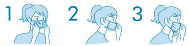1. Flatten the mask, wear white color inside, put nosepiece in the top area and place loops over ears. 2. Adjust nosepiece for dust protection. 3 Pull pleats down below chin to get breathing space.